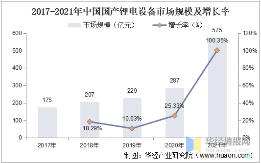 2017-2021年中國國產鋰電設備設備市場規模及增長率