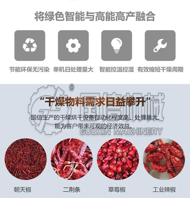 辣椒烘干機因其發展較早、技術成熟、干燥效果好而得到廣泛應用。特別是近年來,高效節能熱源“空氣能熱泵”的應用,使我們的干燥設備“錦上添花”,不僅環保,成本又很低。在這種風浪口,我們廠家設備技術推陳出新,贏得了更廣闊的市場。