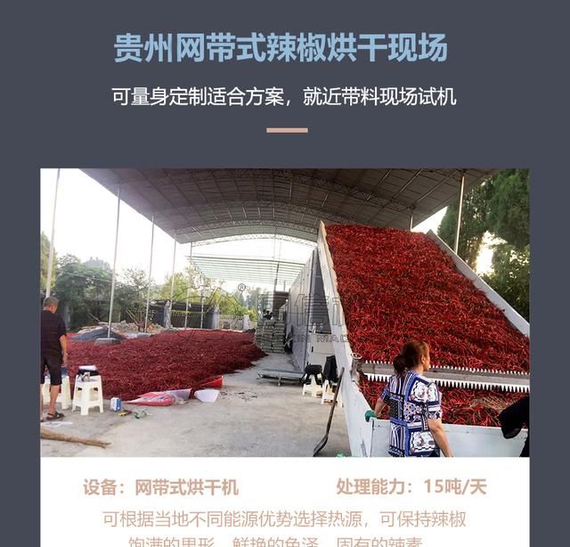 我們生產的多層網帶辣椒烘干機不僅適用于大、中、小型辣椒加工廠,而且很適合家庭使用。采用網帶結構承載辣椒,熱空氣通過篩網均勻帶走辣椒內部水分。智能面板用于控制烘干箱內部的溫度和濕度。烘干能力強,烘干速度快,自動化程度高,贏得了廣大用戶的肯定。