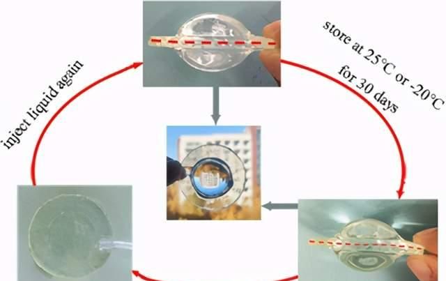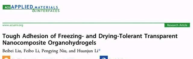 所得的有機(jī)水凝膠顯示出優(yōu)異的拉伸強(qiáng)度(0.9 MPa),高透明度(97%),優(yōu)異的抗干燥和抗凍性以及良好的離子傳導(dǎo)性。特別地,選擇聚丙烯酸(PAA)作為橋聯(lián)聚合物以賦予有機(jī)水凝膠強(qiáng)的濕粘合力。界面粘合能超過2200 J m-2,這歸因于離子配位和納米粒子與PAA鏈中羧基之間的氫鍵的協(xié)同作用。有趣的是,基于強(qiáng)大的濕附著力,透明有機(jī)水凝膠可以組裝成具有長期環(huán)境穩(wěn)定性的液壓驅(qū)動(dòng)軟可變焦點(diǎn)透鏡。這項(xiàng)工作將為控制水凝膠的濕粘附力提供新的見解,并且對(duì)于具有長期環(huán)境穩(wěn)定性的基于水凝膠的功能性裝置具有巨大的潛力。相關(guān)論文以題為Tough Adhesion of Freezing- and Drying-Tolerant Transparent Nanocomposite Organohydrogels《ACS Appl. Mater. Interfaces》上。