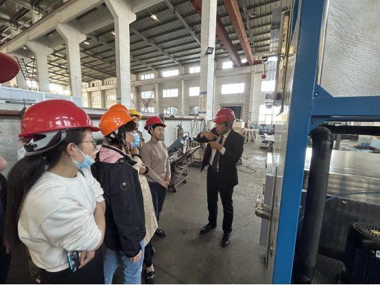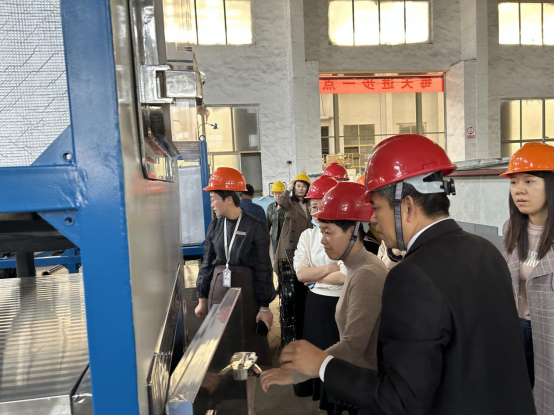 董事長李所彬帶領各位專家博士參觀工廠車間。