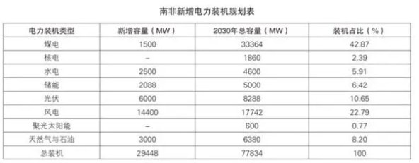 按照該規劃,到2030年,南非將新增29000MW的電力裝機,其中風電和光伏發電新增裝機合計為20400MW,占比70%左右。