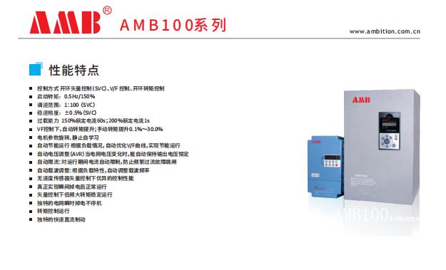 深圳市安邦信電?有限公司(以下簡稱安 邦信或AMB)成?于1998年10?,是中國第 ?批電??業(yè)部20家變頻器?產(chǎn)企業(yè)之?, 專注于變頻器及智能電?產(chǎn)品的研發(fā)、?產(chǎn) 和銷售,快速為客?提供個性化的解決? 案。