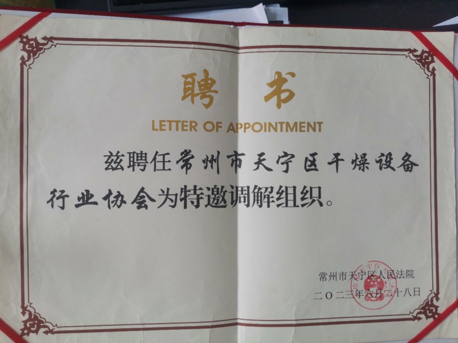 3.天寧法院為干燥設備行業協會頒發聘書(聘為特邀調解組織)