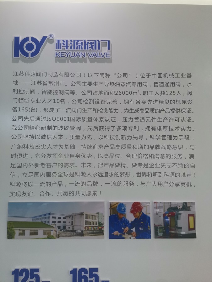 6月29日,協會秘書處走訪了江蘇科源閥門制造有限公司,江蘇科源閥門制造有限公司位于中國機械工業基地--江蘇省常州市。公司主要生產導熱油蒸汽專用閥,管道通用閥,水利控制閥,智能控制閥等。公司占地面積26000m2,職工人數125人,閥門領域專業人才10名,公司檢測設備完善,擁有各類先進精良的機床設備165(套),形成了一流閥門生產和檢測能力,為生成高品質的產品提供保證。公司先后通過ISO9001國際質量體系認證,壓力管道元件生產許可認證。我公司精心研制的波紋管閥,先后獲得了多項專利,擁有雄厚技術實力。